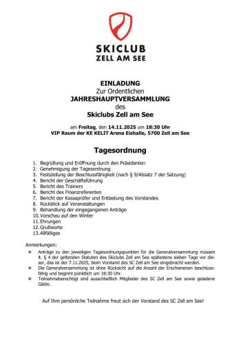 Wir freuen uns auf zahlreiche Teilnahme bei der diesjährigen Jahreshauptversammlung des Skiclubs Zell am See am 14.11.2025.